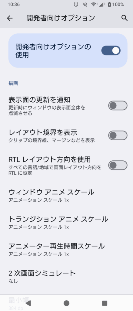 開発者向けオプションはさまざまAndroid自体の設定を変えることが可能ですので、慎重に操作を行ってください。