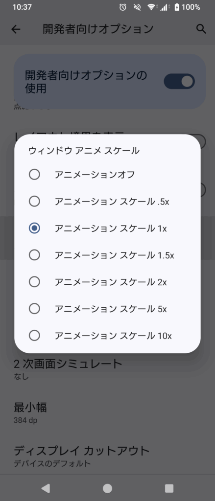 数字が大きくなるほど、アプリの移り変わりがゆっくりとなり、オフで最速です。