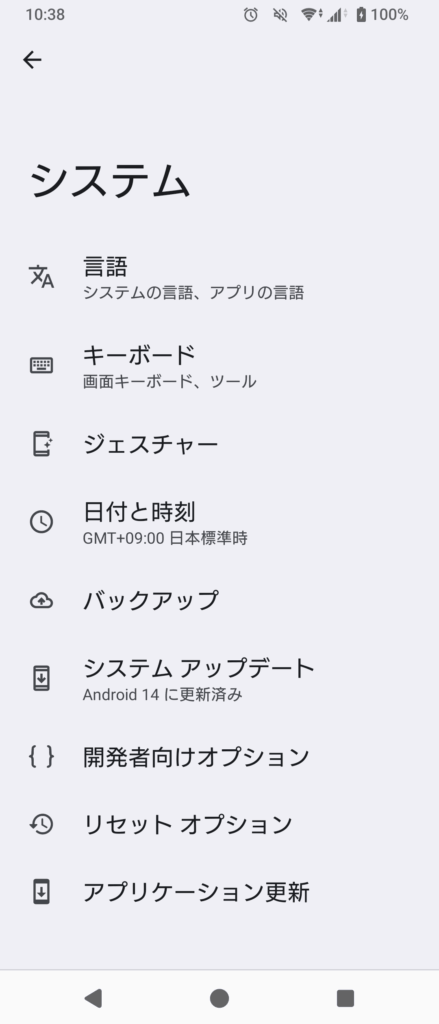 開発者向けオプションが表示されていればOK(画像下から3番目)