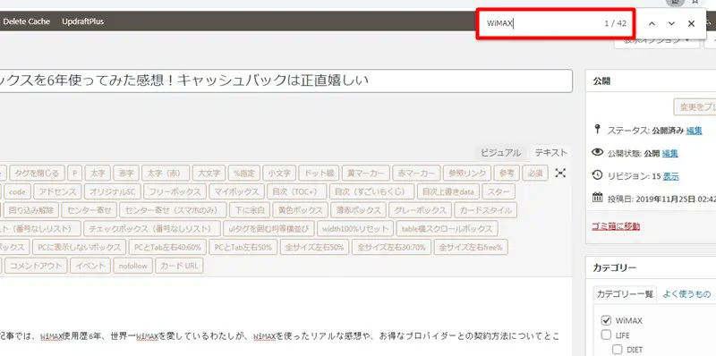 WordPressはブラウザ上で動作しているため、単語の検索はできますが、単語を変換するにはひとつずつ手打ちしていくしかありません。