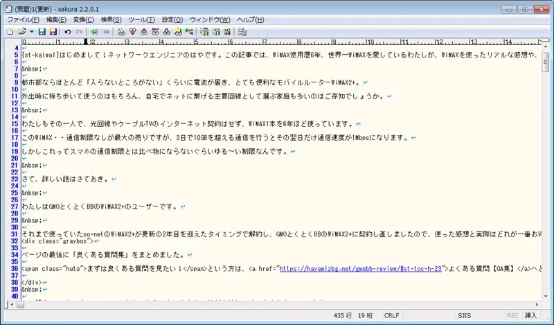 サクラエディタへコピーした記事をペースト(貼り付け)