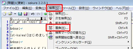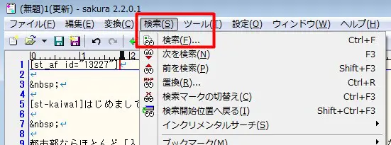 ここからは「サクラエディタ」を使ってキーワードの一括変換の流れをご紹介します。