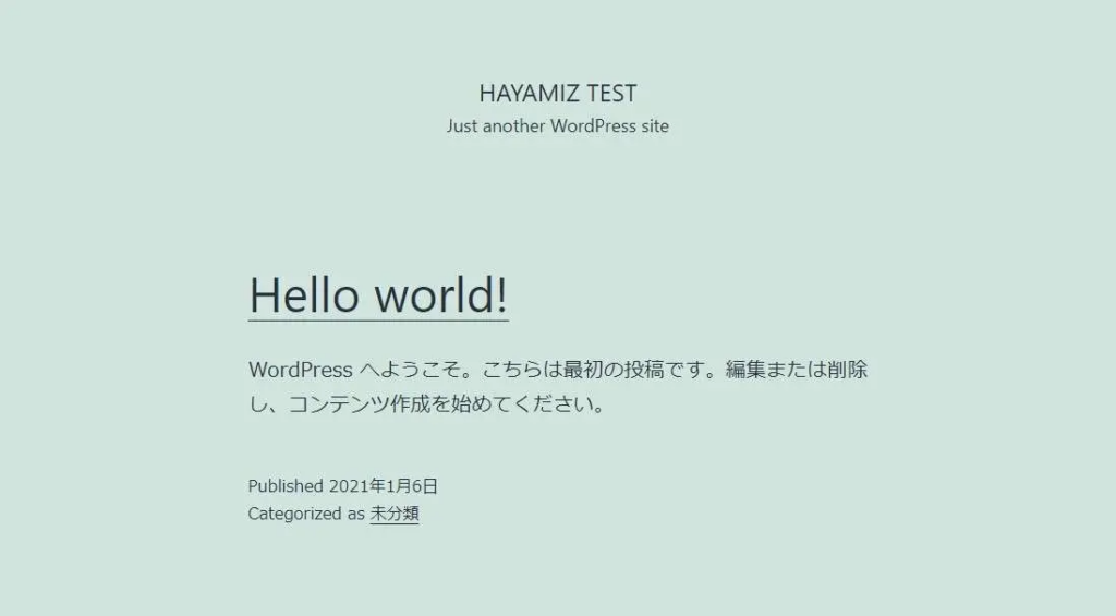 WordPressインストール直後は初期テーマが適用されている状態です。