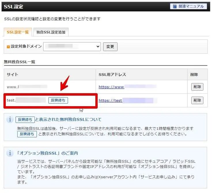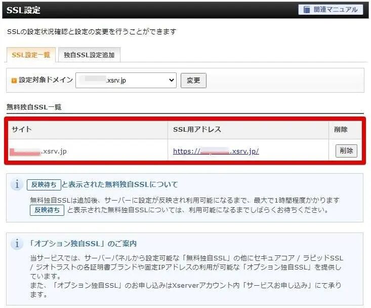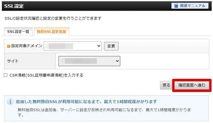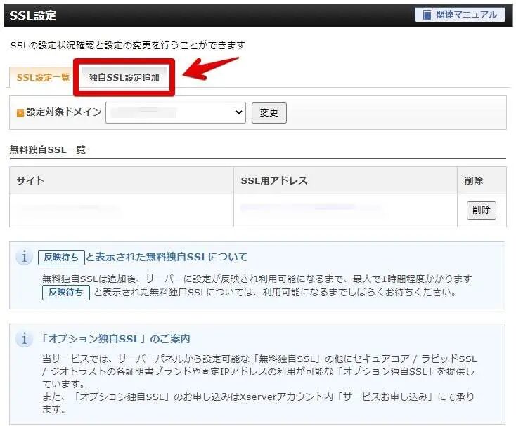 間違えて「無料独自SSLを利用する」のチェックを外してしまった場合、あとから追加できますのでご安心ください。