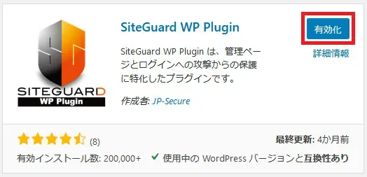 左の部分に「SiteGuard WP Plugin」が表示されますので、「インストール」をクリックします。
