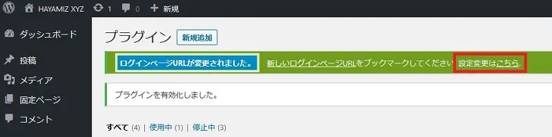 インストール完了後、管理画面の上の部分に図のようなメッセージがでます。
