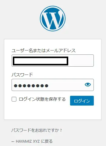 ユーザー名とパスワードは、エックスサーバーにワードプレスをインストールするときに設定したユーザー名とパスワードを入力します。