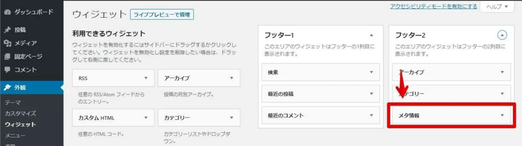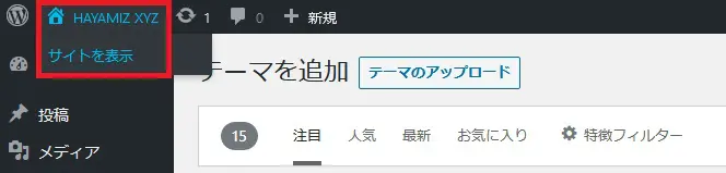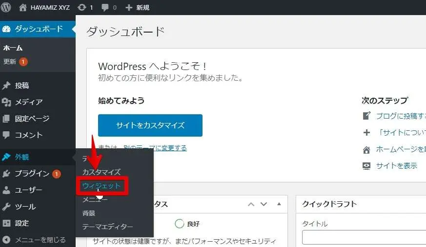 WordPress管理画面へ入り「外観」「プラグイン」とたどる