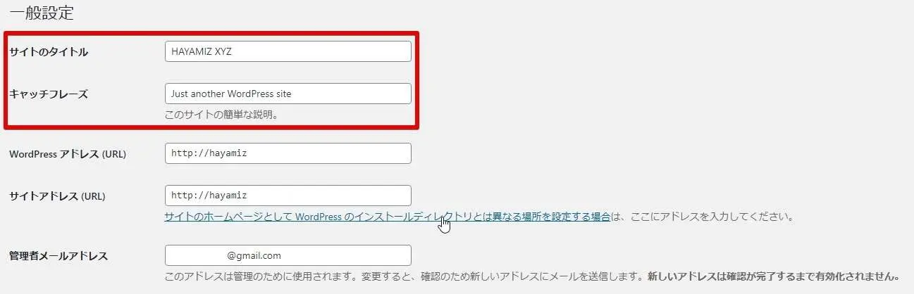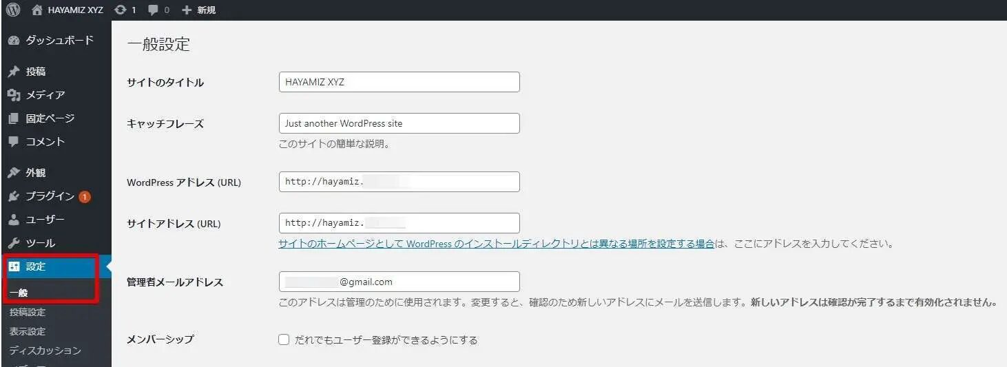WordPress一般設定は、WordPress管理画面から「設定」「一般」とたどります。