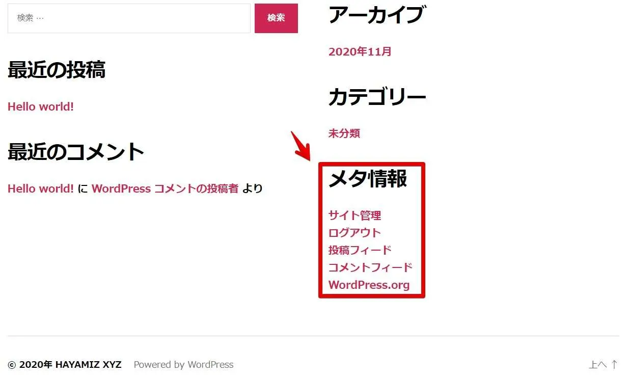 メタ情報には「サイト管理」や「ログアウト」といった情報があります。