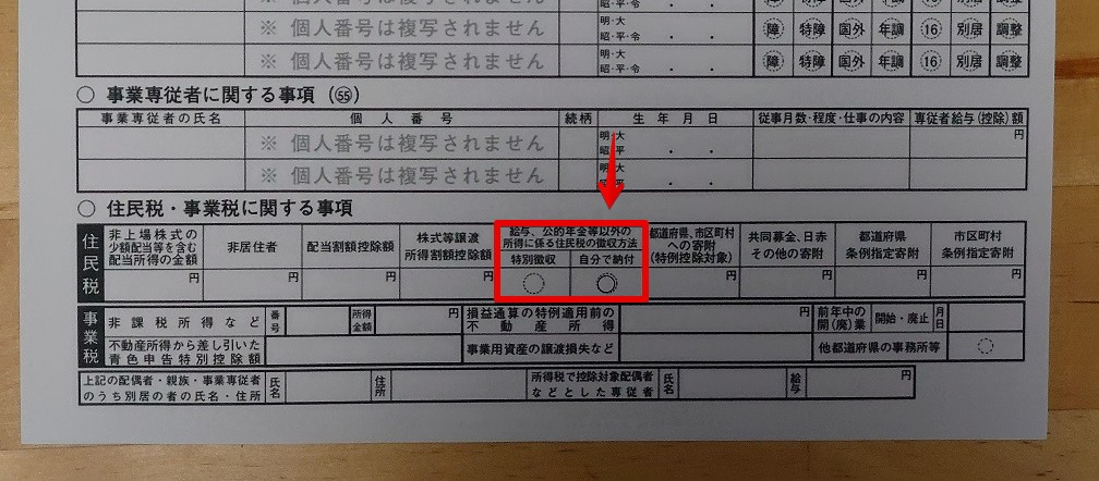 確定申告で住民税を「給与から差引き(特別徴収)」にしてしまう
