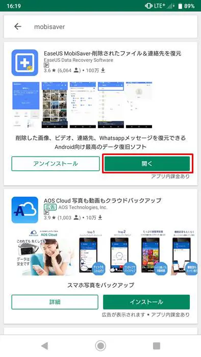 Googleプレイから「EaseUS MobiSaver」を検索し、インストールしてください。