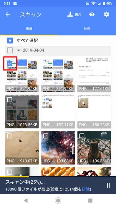 すぐにスキャンがはじまり、写真一覧が表示されます。