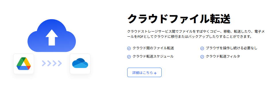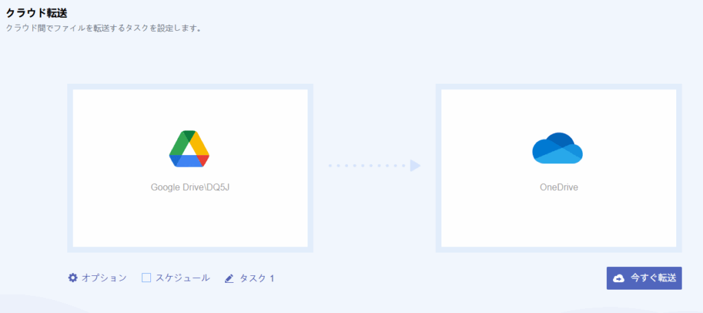 大切なデータを別のクラウドで保存しておきたい場合や、容量不足でデータを別クラウドへ退避するなどに便利な機能です。