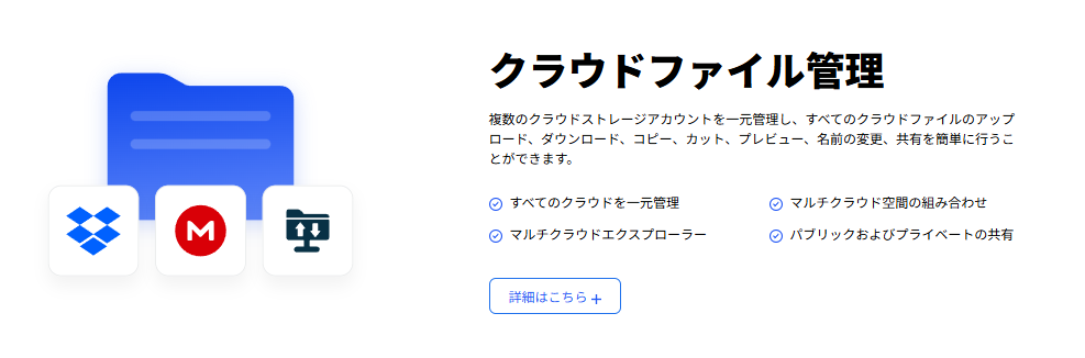 複数クラウドストレージを一括して管理して、ファイル管理が可能です。