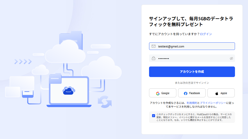 本記事ではMultCloudへユーザー登録する方法を利用しています。