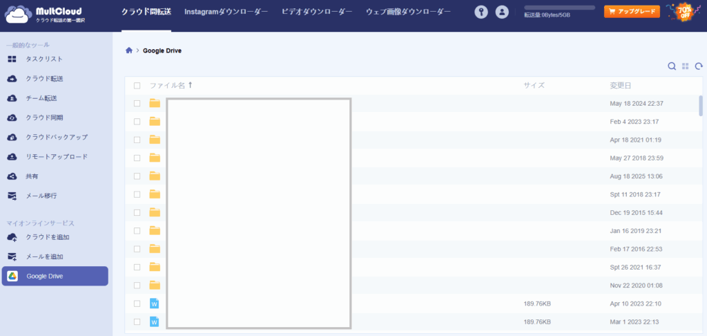 MultCloud上で各クラウドサービスが一括管理できるようになりました。
