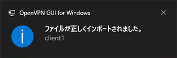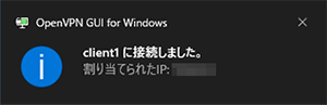 client1に接続しました。とウィンドウが表示されればVPN接続が完了できています。
