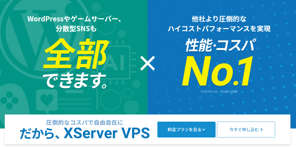 初心者がVPNサーバーをゼロから立てるにはハードルが高すぎます。そこで誰でも簡単に作成ができるようにXserver VPSを利用します。