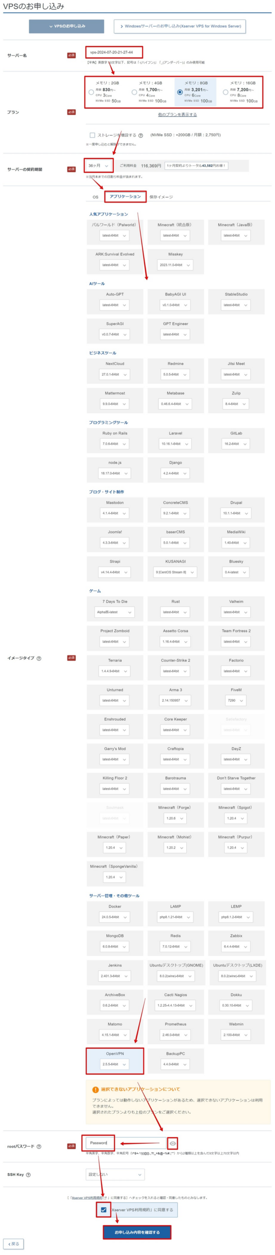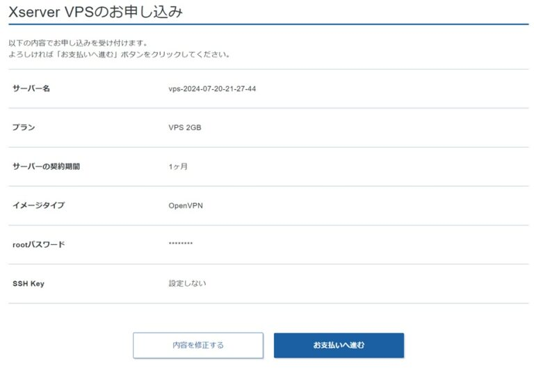 OpneVPNのサーバーを立てるためにXserver VPSを申し込みます。