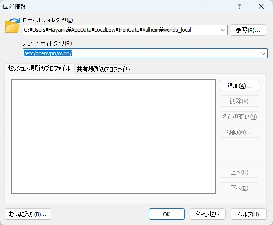 リモートディレクトリの部分に「/etc/openvpn/ovpn/」と入力し「開く」ボタンをクリックしてください。
