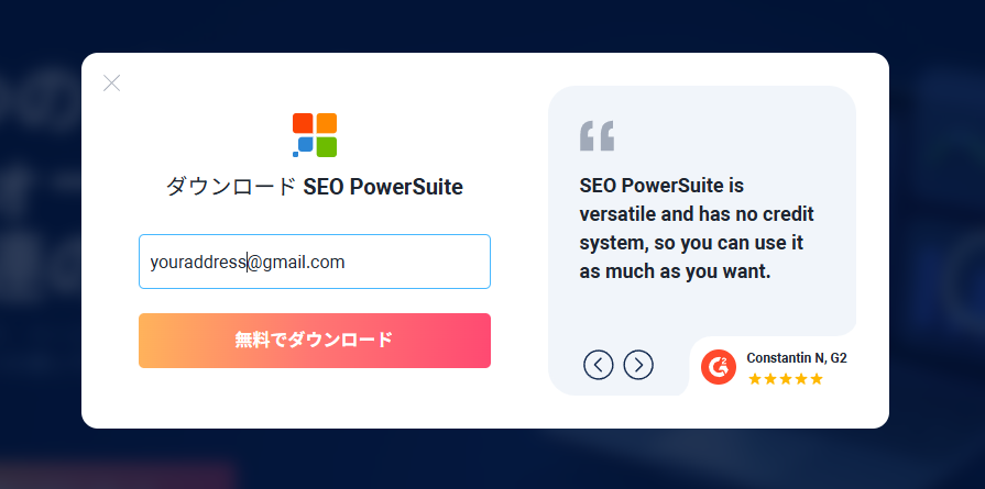 まずはRank Trackerの公式サイトから無料ライセンス版をダウンロードします。いきなり購入しても問題はありませんが、まずは使い勝手だけでも確認してみましょう。