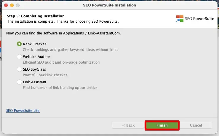 インストールが完了するとRank Trackerが自動で起動しますので、初期設定に移りましょう。