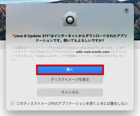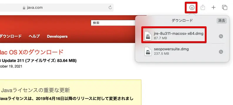 ダウンロードボタンをクリックしファイルをダブルクリックします。