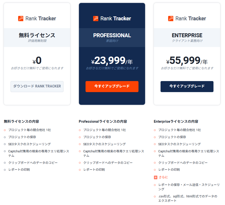 ライセンスの詳細は公式サイトのRank Tracker ライセンスの選択をご覧ください。