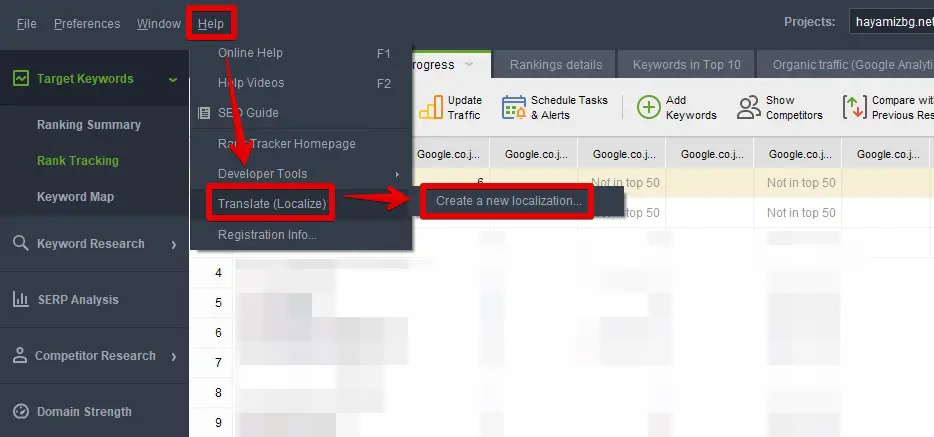 Rank Trackerは、インストール時には日本語が選べませんが、インストール後に日本語化することができます。