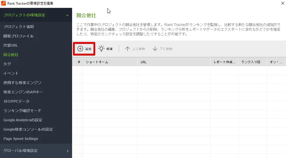 ※無料ライセンス版はプロジェクト毎の競合他社1社のみが使えます。