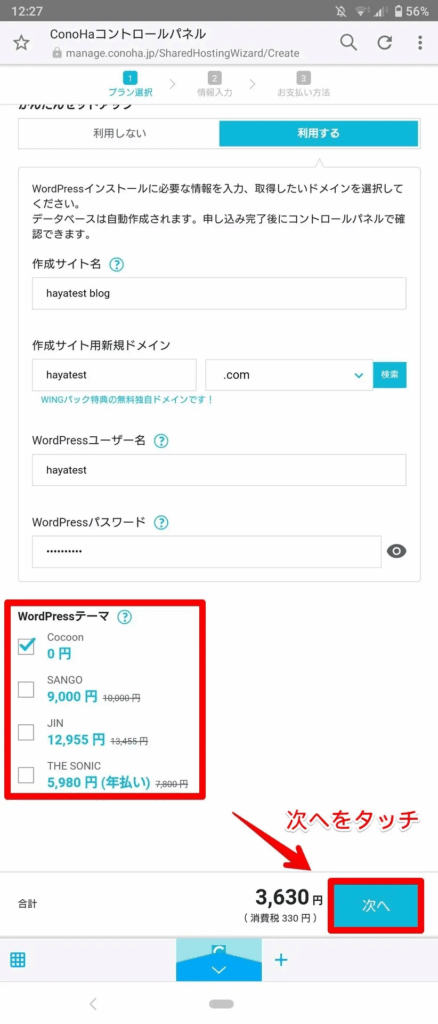 契約からドメイン取得、WordPressの自動インストールまで、必要なことももちろんスマホだけでOK!迷わず進めらます。