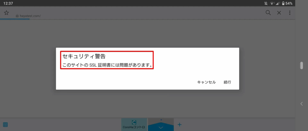 上記のような警告が出た場合、SSL証明書を確認します。サーバー管理画面で「サイト管理」「サイトセキュリティ」「独自SSL」とたどることで状態が確認できます。