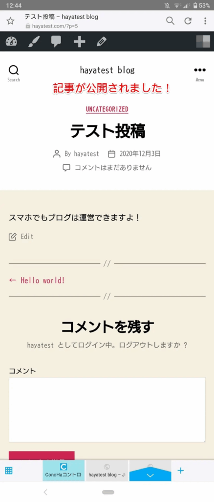 以上のようにこの記事を参考にマネていくだけでConoHa WINGのブログをスマホだけで開設することができます。