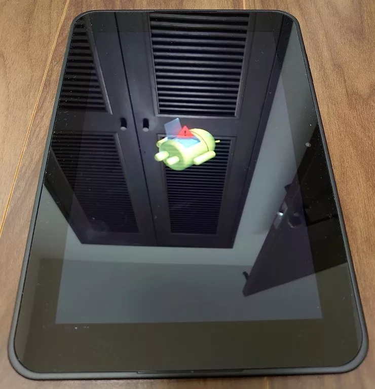 ロゴが表示されたらそのまま指を離してOKです。しばらく(30秒ぐらい)待ちます。すると、ひっくり返っているキャラクターが表示されますので「電源ボタン」を一度押します。