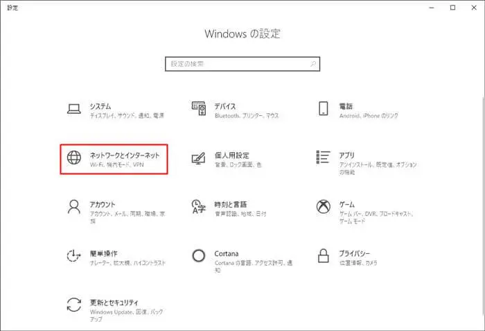 「ネットワークとインターネット」をクリック