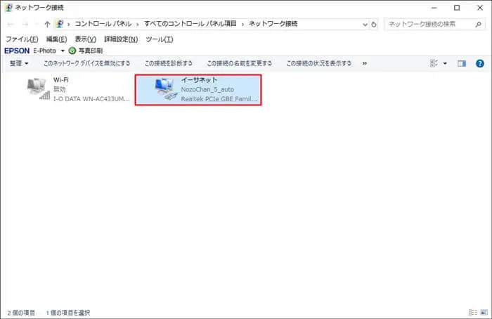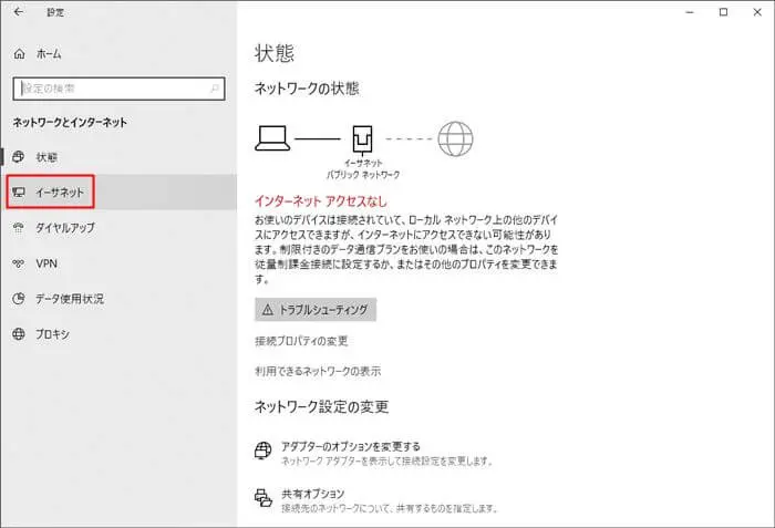 「イーサネット」をクリック