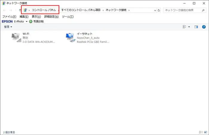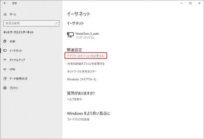「アダプターのオプションを変更する」をクリック