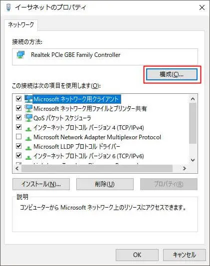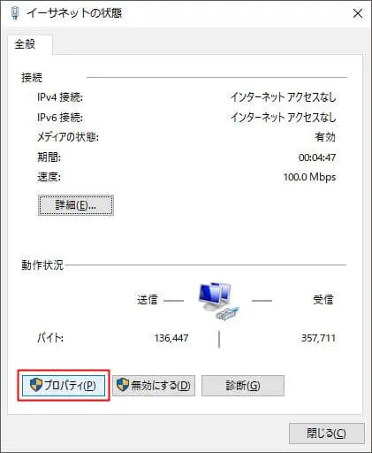 「プロパティ」をクリック