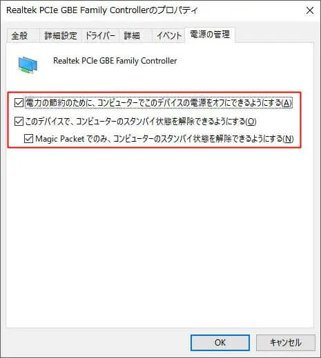 後ほど記事内で説明がでてきますが、この機能がないと外出先からパソコンの電源を投入することができませんので、ご注意ください。