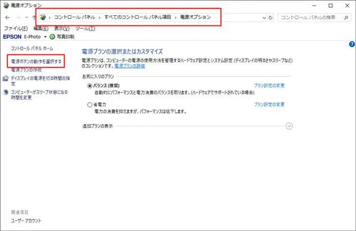 そして、左側にある「電源ボタンの動作を選択する」をクリックします。