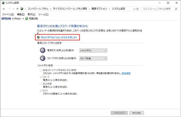 「現在利用可能ではない設定を変更します」をクリック