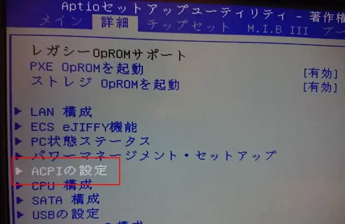 • 「詳細」「ACPIの設定」を選択