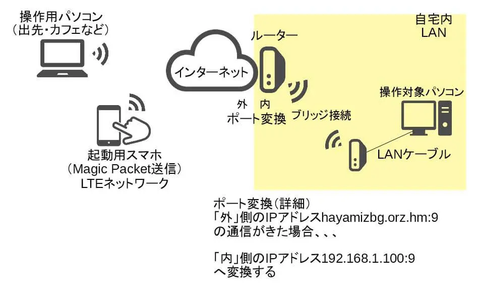 今回はS3の状態から、外出先(LTEインターネット)から自宅パソコンを起動させる方法を紹介します。