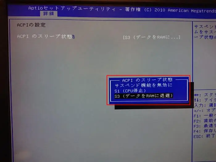 お使いのマザーボードがS1~S5のどれに対応しているかはBIOS画面から確認することができます。